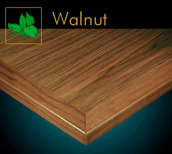Walnut veneer top with 2" wide x 1-1/4" thick solid walnut edge.