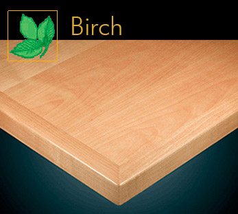 | Birch veneer top with 1-1/4" wide x 1-3/4" thick solid birch edge. |