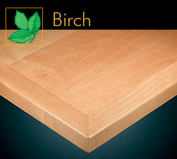 | Birch veneer top with 2" wide x 1-3/4" thick solid birch edge. |