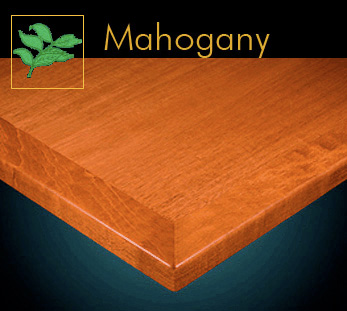 Mahogany veneer top with 2" wide x 1-1/4" thick solid mahogany edge.